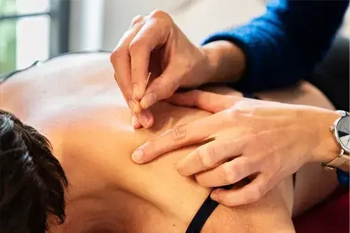 Een behandeltechniek waarbij de kinesitherapeut naalden inbrengt op specifieke drukpunten of spieren om zo de pijn te verlichten.